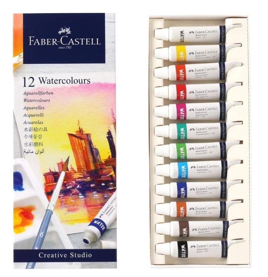 • Shades in Pack: Sap green, raw umber, emerald green, burnt sienna, cobalt blue hue, raw sienna, Prussian blue, ivory black, light red, Chinese white, crimson lake, scarlet lake, vermilion hue, Naples yellow, permanent orange, Camlin blue, yellow ochre, Indian yellow, gamboge hue, olive green, lemon yellow, cerulean blue hue, burnt umber, Payne's grey